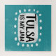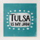 "Tulsa Is My Jam" é um design de texto divertido com uma forma de sotaque branca cercado por pontos brancos texturizados.