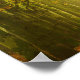 Poster impressão de um túnel em direção à luz formada por faia verde ao longo de uma pista de floresta.