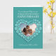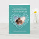 Você está casado há 11 anos? Se sim, é aniversário de casamento de turquesa, então faça deste dia algo especial com um cartão de turquesa. Personalize este cartão de aniversário de 11 anos de casamento com a sua relação, foto juntos, anos de casamento e sua própria mensagem no interior do cartão. O exemplo diz: Para minha querida esposa, no nosso aniversário de turquesa. Outros itens combinando estão disponíveis. Contas de turquesa em um efeito de coração, arte e design por Sarah Trett para www.mylittleeden.com e www.mylittleedenweddings.com