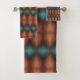 Na moda e toalha decorativa de banho, com chocolate, bisnagas de cobre e turquesa.