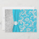 Este maravilhoso convite de casamento monograma, azul-turquesa e damasco-prateado, com FAUX gravando e fita IMPRESSA e medalhão-jubilado seria perfeito para um azul-turquesa ou azul-aqua, e para o tema do casamento prateado, mas também funcionaria como excelente para uma festa Doce, Bat Mitzvah, ou outro evento especial. As opções de texto e papel são personalizáveis. Se você precisar de outros itens neste estilo, envie seu pedido por e-mail para niteowlstudio@gmail.com.