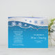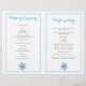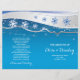 Uma adorável cerimônia de núpcias dobrada no inverno e um programa de festas exibindo linhas de lindos flocos de neve brancos e azuis, uma linha de ondas de cinza prateada e estrelas de cinza em fundo de turquesa. No verso há flocos de neve azuis e bordas aqua. Se você dobrar ao meio você vai ter um programa de casamento estilo livreto para o seu casamento de Natal. O tipo de papel de valor é aquele que você deve escolher à medida que ele se dobra bem.