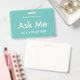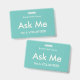 Crachás verdes e brilhantes "Perguntem-me" para voluntários, professores, centavos, guias, organizadores de eventos para eventos especiais, tais como casamentos, feiras de artesanatos, shows de casas e jardins, eventos de caridade, funções empresariais e corporativas. A cor da tipografia é marfim pálido que dá a este crachá uma aparência moderna. Fácil de personalizar!