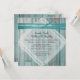 O convite quadrado chique do casamento do país feito em uma turquesa pintada resistiu ao olhar de madeira. Os gráficos de um lenço laçado branco fino e de uma fita chique de turquesa, decoram o convite. Personalize todo o texto para seu dia especial. Produtos de harmonização disponíveis.