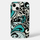 Turquoise Floral Swirls iPhone 14 Caso