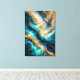 Stunning abstract fluid art featuring dynamic swirling turquoise, deep navy blue, and elegant white marble patterns beautifully accented with luxurious gold leaf and shimmering metallic veins. This modern masterpiece brings movement, depth, sophistication, and a touch of opulence to any interior. Perfect for displaying in a living room above the sofa, bedroom, home office, entryway, or dining area. Ideal for lovers of contemporary luxury décor, boho-chic, or elegant modern interiors who want a calm yet striking statement piece. Excellent as a housewarming gift, anniversary present, or beautiful accent for upscale homes.
