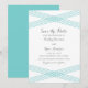 Simples e elegante Deco Moderno Salve o Convite para Datas com um design de arte deco com risca riscada e cruz em turquesa. Este anúncio clássico de salvamento da data pode ser facilmente personalizado com os detalhes do seu casamento. Para obter mais opções de personalização, clique no botão Personalizar Ti.