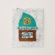 Uma tartaruga engraçada sobre pedaços de colagem castanhos e turquesas, reunidos com uma faixa de flores tarugas. Todas as peças se sentam sobre um fundo de textura branca.