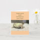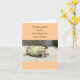 Foto da tartaruga virada para as costas (casca) e o texto, "Espero que em breve volte aos pés". Notecard está vazio no dentro para sua mensagem pessoal.