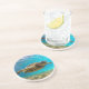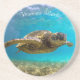 Esta porta copos de arenito é mostrada com uma impressão fotográfica de uma tartaruga no mar. Personalize este item ou comprar como está. Imagem do stock