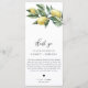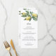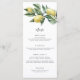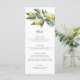Este menu apresenta um design de limão de aquarela. Adicione um obrigado aos seus convidados no verso do menu ou deixe-o vazio. O cabeçalho do script é uma imagem que não pode ser editada. Todo o outro texto é totalmente editável. Para personalização mais avançada deste design, basta selecionar o botão "Personalizar" acima.