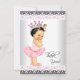 Cartão de agradecimento de baby shower de menina com fundo de renda rosa e preto e adorável bebê vintage usando tutu rosa, sapatos rosa, coroa chique e laço rosa no cabelo. Este cartão de agradecimento de bebê estilo flat rosa é facilmente personalizado adicionando sua mensagem no estilo de letra, tamanho e cor, e redação de sua escolha, ou deixe em branco para adicionar sua mensagem manuscrita após o recebimento.