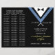 Crie o seu próprio programa masônico personalizado para a Instalação Anual de Oficiais, chamada nominal ou outro evento de alojamento. Use este modelo de DIY editável e fácil para inserir os nomes de seus oficiais, atuais e passados, juntamente com datas importantes e outras informações. O elegante design de pedreiro mostra arte original de Raphaela Wilson de um smoking clássico e gravata com joias do mason do lado de fora, e dentro de quadrado e bússola moderno. Se você editar o modelo masônico ainda mais, você pode editar o script clássico de caligrafia e as fontes modernas para uma tipografia que melhor se adapte ao seu estilo - até mesmo mover-se pelo trabalho de arte para incluir espaço para uma foto, se quiser. Categoria: artigos de papelaria masônicos personalizados; folhas de papel/brochura freemason personalizadas; e modelo de programas de instalação tux masonic. As cores do partido temático Masônico: azul marinho, prata, preto e branco.