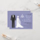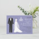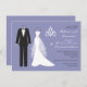Tuxedo, vestido branco de noiva e candelabro sobre fundo violeta claro (azul claro e fraco) Janto de ensaio Convite Você pode usar este convite para anúncios de casamento, convites para festas de noivado, salvar a data, jantar ensaios ou convites para almoços de casamento.
