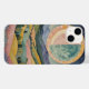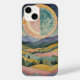 Esta é uma pintura de paisagem simbólica e caprichosa que apresenta uma vasta encosta rolada sob um céu celeste. As colinas são renderizadas em uma série de linhas ondulantes e varridas e uma paleta mutada de verdes, amarelos, azuis e pínus macios, sugerindo um terreno fértil, como um sonho. O primeiro plano é preenchido com uma densa variedade de plantas estilizadas e flores. Dominar o céu é uma grande órbita central que representa uma face celeste, dividida entre um perfil humano e um padrão geométrico, semelhante ao mosaico. O céu acima é um índio profundo, pontilhado de estrelas ouros, com uma lua de cheio visível à direita. O estilo é altamente decorativo e folclórico, com senso de harmonia cósmica e maravilha natural.