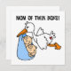 Adorável Mãe do design dos Twin Boys apresentando um carregando de cegonha um cobertor azul com gêmeos bebês e texto preto que diz "Mãe dos Twin Boys!". Mamãe dos Twin Boys mantém caixas, azulejos, ornamentos, notebooks, adesivos, canecas, mousépias, sacos de tote, chaveiros, ímãs e muito mais!