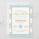 Este adorável convite de aniversário apresenta listras azuis e brancas com sotaques dourados. Perfeito para uma festa tematizada de uma pequena estrela cintilante. Personalizar para qualquer idade.