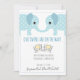 Nelefantes brancos anunciam gravidez em azul, branco e sepia, com corações com asas. Um belo anúncio com texto de estilo de escrita manuscrita peculiar e caprichoso. Personalize com seus nomes e data de vencimento. Sexo neutro. Você também pode escolher outras tipfaces que são caprichosas para combinar com os elefantes bonitos.