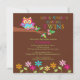 Comece o seu evento com o convite para Chás de fraldas de coruja dos nossos gêmeos bonitinhos apresentando a mais doce coruja-mãe sentada num galho de árvore com corujas gêmeas bébés colocadas sobre um fundo castanho de chocolate. Nosso convite para chá de fraldas de coruja moderno e colorido apresenta corujas cor-de-rosa, azul-turquesa, verde limão, laranja e bolinhas. Perfeito para gêmeos. Apenas personalize com suas informações e você está pronto para ir! Itens correspondentes, incluindo a postagem do chá de fraldas, adesivos favoritos, cartões de agradecimento e obrigado que você adesivos também estão disponíveis em nosso compro. © Dreamlike Magic