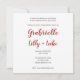 This baby shower invitation for twins has a modern and fun design with a babies illustration in red and hearts.