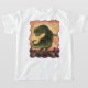 Desfile Animal TRex Dinossauro T-Shirts e Gifts apresenta um Tyrannosaurus Rex bonitinho da frente e o verso numa paisagem pré-histórica completa com um vulcão fumante. Por trás do dragão lúdico está um céu amarelo texturizado, laranja e uma engraçada borda roxa, toda pintada pelo nosso talentoso ilustrador infantil, Traci Van Wagoner. Excelente para amantes de dinossauros de todas as idades, Animal Parade T-Rex está esperando para fazer aquele fã de dinossauros na sua lista de presentes sorrir.