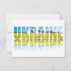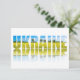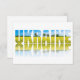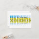 Texto da Ucrânia composto por campo amarelo com céu azul com reflexo de texto em água
