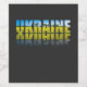 Texto da Ucrânia composto por um campo amarelo com céu azul com reflexo de texto em água.