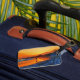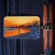 Esta etiqueta de bagagem tem uma fotografia ensolarada quente tirada de um cavaleiro de praia numa praia da Califórnia. Pode apenas lembrá-los de viagens passadas para a costa ou de futuras. Suas cores azul e laranja ouro adicionarão um toque personalizado agradável às suas malas. Tem um bolso limpo de um lado para deslizar num cartão de visita.