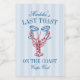Celebre a noiva na praia com esses rótulos de vinho para festa de despedida de solteira no estilo costeiro. "Último brinde na Costa" aparece em letras azuis de verão, com uma ilustração de uma lagosta vermelha brindando com duas taças de champanhe. Personalize com o nome da noiva e o destino.