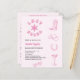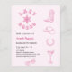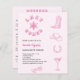 Um fundo cor-de-rosa. Decorado com ícones cor-de-rosa. Personalize e adicione o nome da noiva a ser e os detalhes da festa. Texto: Última Rodeio. Volta: itinerário do fim de semana. 1 folha = 1 convite impresso de borda a borda.