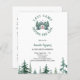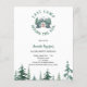 Um fundo branco. Decorado com um ícone de acampamento verde. Personalize e adicione o nome da noiva a ser e os detalhes da festa. Último acampamento antes do véu. Volta: itinerário do fim de semana. 1 folha = 1 convite impresso de borda a borda.