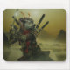 Um mousepad ilustrado que caracteriza um lobo do samurai.
