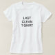 Último t-shirt limpo. Um t-shirt com a frase "último t-shirt limpo" escrito para fora na pia batismal Helvética preta. Um presente das camisetas engraçadas por adolescentes, atletas, miúdos da faculdade, e pessoas que deiam fazer a lavanderia.