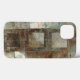 © Mike Schick/Apple selvagem. Uma imagem abstrata dos quadrados e dos outros padrões. A imagem está nas máscaras de azul, de marrom, e em um toque do branco.