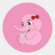 Vinheta com design com ilustração de um elefante rosa com um rato branco ilustrado por Radka Kavalcova/MaxiHarmony