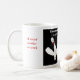 Uma caneca de café do assistente social: mostra um assistente social americano médio no trabalho.