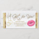 Um Cartão De Certificado De Presente. Lábios cor-de-rosa sobre fundo damasco dourado com sotaques dourados. ⭐ Este produto é 100% personalizável. Gráficos e texto podem ser excluídos, movidos, redimensionados, alterados, rodados etc... ⭐ 99% dos meus designs na minha loja são feitos em camadas. Isso facilita o redimensionamento e a movimentação de gráficos e textos para que cada produto seja ajustado perfeitamente. ⭐ (Não se esqueça de redimensionar ou mover gráficos, se necessário, antes de fazer pedidos) Você também pode "TRANSFERIR DESIGN" em outros produtos Zazzle e ajustar o design para o ajustado na maioria dos itens do Zazzle. (o botão fica no lado direito da página) Alguns gráficos de texto estão prontos para preencher a(s) caixa(s) ou você pode clicar no botão "PERSONALIZAR" para adicionar, mover, excluir, redimensionar, mudar a cor do plano de fundo ou alterar qualquer fonte ou gráfico. O design é feito com vetor de alta resolução e/ou gráficos digitais para um impressão profissional. ⭐ NOTA: (ISTO É UM IMPRESSÃO. Todos os designs do produto zazzle são "impressões", a menos que indicado em "Sobre este produto"). O design será impresso EXATAMENTE como se o visse no ecrã e no produto...portanto, certifique-se de que, ao fazer suas alterações no redimensionamento de qualquer dos gráficos ou textos que ele ajustado nas áreas corretamente, e que sua ortografia e texto seja como você gosta que seja em tamanho, cor e fonte. Se você tiver alguma pergunta sobre o "SOMENTE DESIGN" ou precisar de ajuda, entre em contato comigo no meu email direto - siggyscott@comcast.net ou visite o link da minha loja: http://www.zazzle.com/store/designsbydonnasiggy (Copiar e Colar) Eu terei todo o prazer em ajudar. ⭐ TODAS AS OUTRAS QUESTÕES (tais como remessa, reembolso, impressão incorreta, produto em si, etc.) CONTACTE A ZAZZLE OU O TITULAR ⭐ DIRETAMENTE ⭐. Obrigado pelo apoio e parada na minha loja - DesignsbyDonnaSiggy. © Donna Siegrist ⭐ ⭐ ⭐ ZAZZLE promete 100% de satisfação.