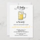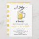 Moderno e simples Um bebê está fazendo um convite para o chá de fraldas. Possui uma caneca de cerveja e fontes divertidas com cores amarelo, branco e preto.