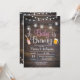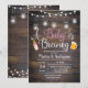 Moça Baby Q convite CHURRASCO Coed Bebê criando convite, cartão de convite rústico com fundo rústico e madeira. Um bebê está a preparar um convite à rapariga, cor-de-rosa.