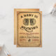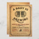 "Um Bebê está criando" Convites para CHURRASCO de Chá de fraldas. Núcleo de gênero. Vintage CHURRASCO Baby Shower Invices com duas canecas de cerveja gelada, texto decorativo, retrô de bebê e um fundo curado rústico. Fácil de personalizar!