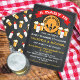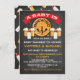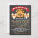 É muito divertido um bebê estar a fazer convites para duches de bebês com barril de cerveja, garrafas de bebês e cerveja contra um fundo de chalkboard. Ilustração desenhada à mão por McBooboobs
