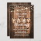 Este convite de chá de fraldas é perfeito para um CHURRASCO de quintal. Apresenta luzes de cordas, madeira e gingham. É perfeito para um chá casual, casais.