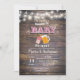 A fabricação de cerveja do bebê do CHURRASCO do Coed do convite do bebê Q da menina convida, rústico convide o cartão com fundo rústico e de madeira.