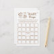Traga diversão extra para a sua celebração com este cartão de jogo Bingo Chá de fraldas. Apresentando um café confortável com coração e chaleira mocha em um simples design rústico, este cartão permite aos hóspedes adivinhar quais os presentes que as mamães a serem receberão e marcar os quadrados enquanto são abertas. O primeiro convidado a receber cinco vitórias consecutivas, fazer um jogo divertido e interativo para todos. Perfeito para um chá de fraldas Café Bébé ou Bebê Brewing, este cartão de bingo gravatas sua decoração do tema do café enquanto mantém os convidados entretidos.