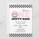 Um Bebê Feliz Retron Pink Checkered Girl Primeiro Convite de Aniversário