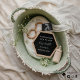 Um belo cesto verde, cheio de coisas para bebês perfeitas para anunciar as grandes notícias