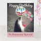 Tão Bonita Carta De Arte Do Balão De Golfinho De Aniversário. Golfinho e cartão de bolo para um olhar brilhante e divertido!