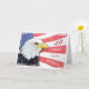 Desejos patrióticos de aniversário com uma águia careca e bandeira dos EUA. Basta adicionar um nome para personalizar este cartão de excelente.