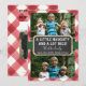 Esses cartões de natal engraçados certamente trarão um sorriso aos rostos de seus amigos e familiares. O cheque de búfalos vermelhos e a textura de madeira colocarão qualquer um no clima para os feriados. A parte traseira apresenta a verificação vermelha e uma foto e mensagem adicionais.