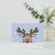 Espalhe alegria natalina com o nosso adorável cartão de Natal do A Red Nose Reindeer! Com um design encantador do seu fiel rena espiando por uma prateleira festiva, este cartão é perfeito para enviar votos calorosos a amigos e familiares nesta época de festas.